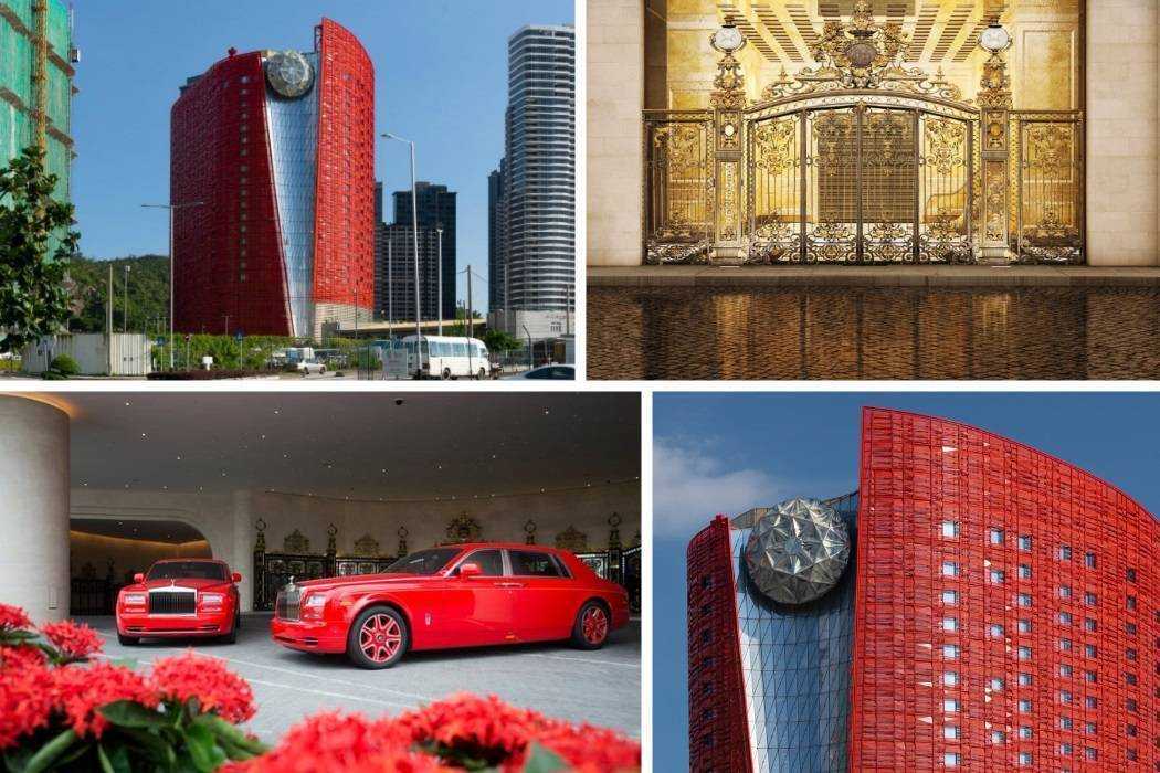 Отель находится в Макао на юге Китая. Его великолепие достойно императора. Интерьер оформлен в барочном стиле: выдвижные мраморные полы, хрустальные люстры, золотая бахрома, великолепные фрески и витражи. Номера отелями называют виллами – всего их 200, типы разные, но все – категории люкс.