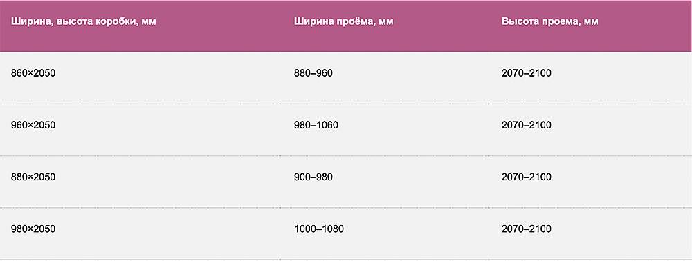 Модульные размеры входных дверей