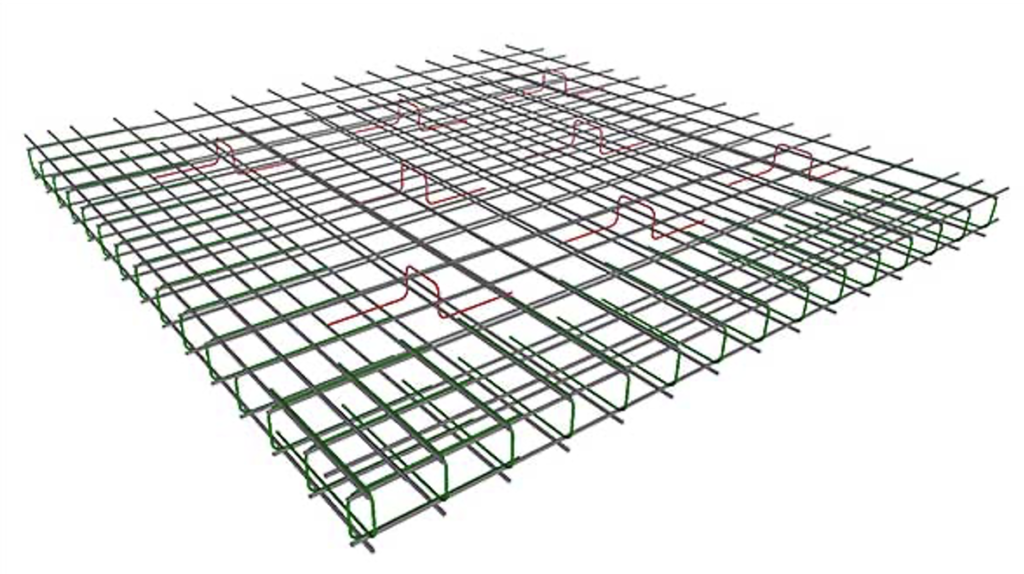 - разрешено увеличение шага ячейки по центру плиты до минимального процента армирования (плюс 0.3% к основному шагу).