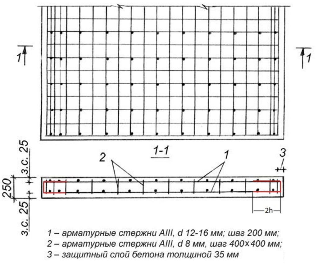 Расчёт арматуры для монолитной плиты