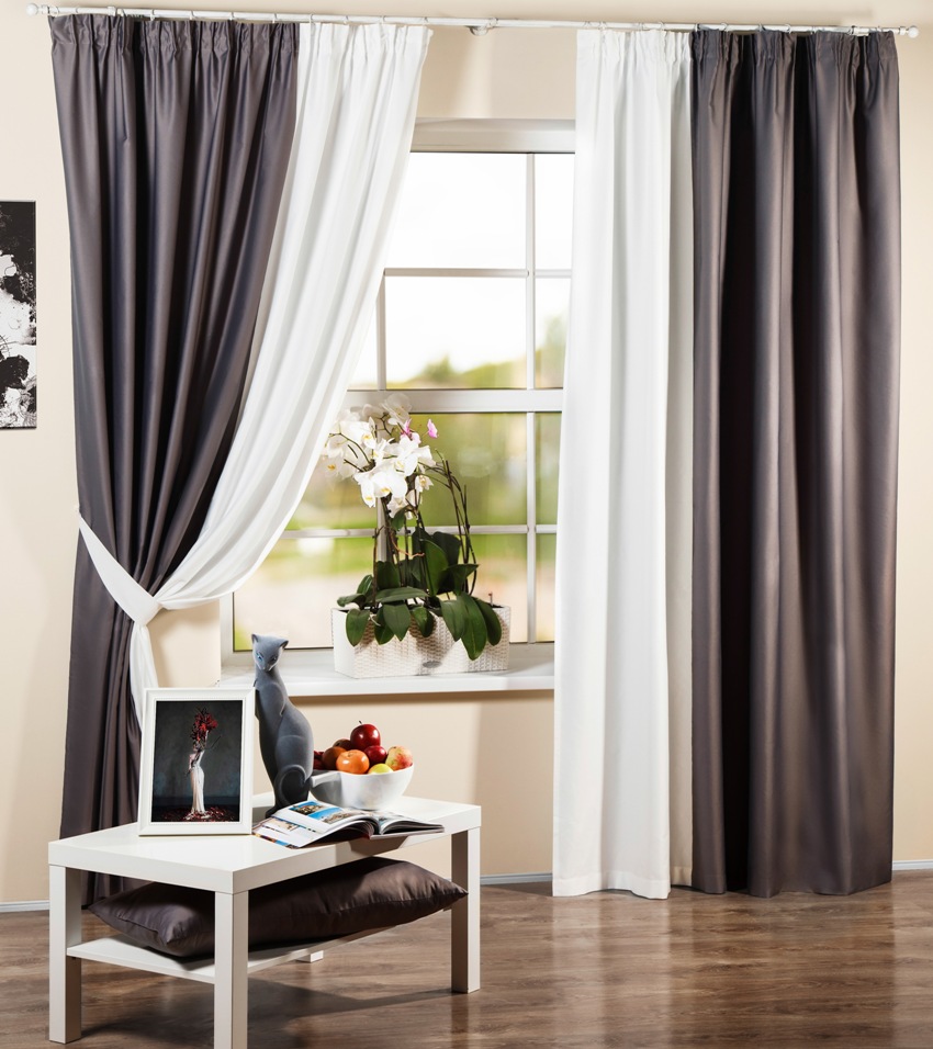 Многие дизайнеры придерживаются точки зрения, что гардины по цвету могут отличаться от выбранной цветовой схемы всей комнаты. Играя на контрасте, можно добиться удивительных результатов: так, в комнате, выполненной в песочных оттенках, хорошо будут смотреться синие или голубые гардины и т.д.