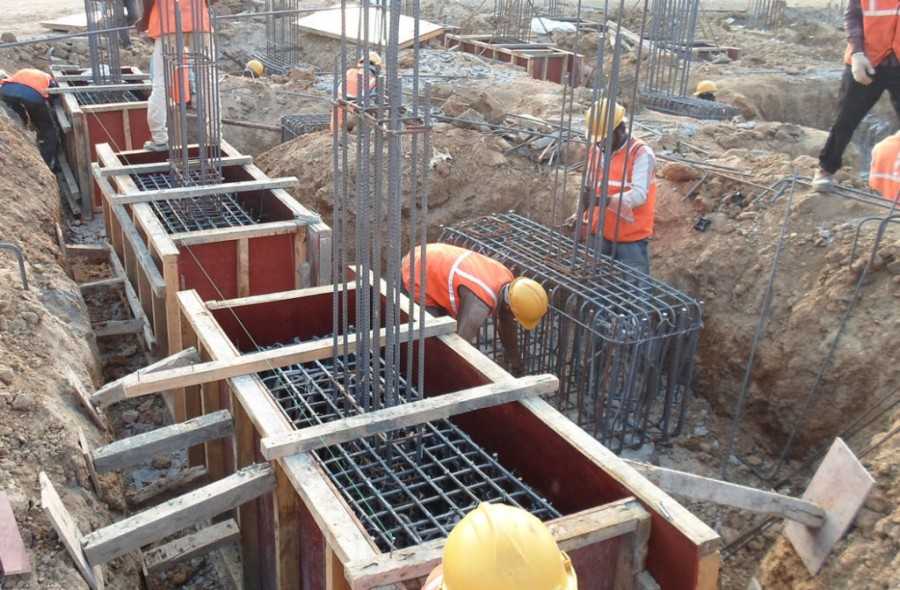 После сооружения необходимо проверить конструкцию и внести исправления. В результате необходимо получить систему щитов, как это видно на фото опалубки для фундамента.