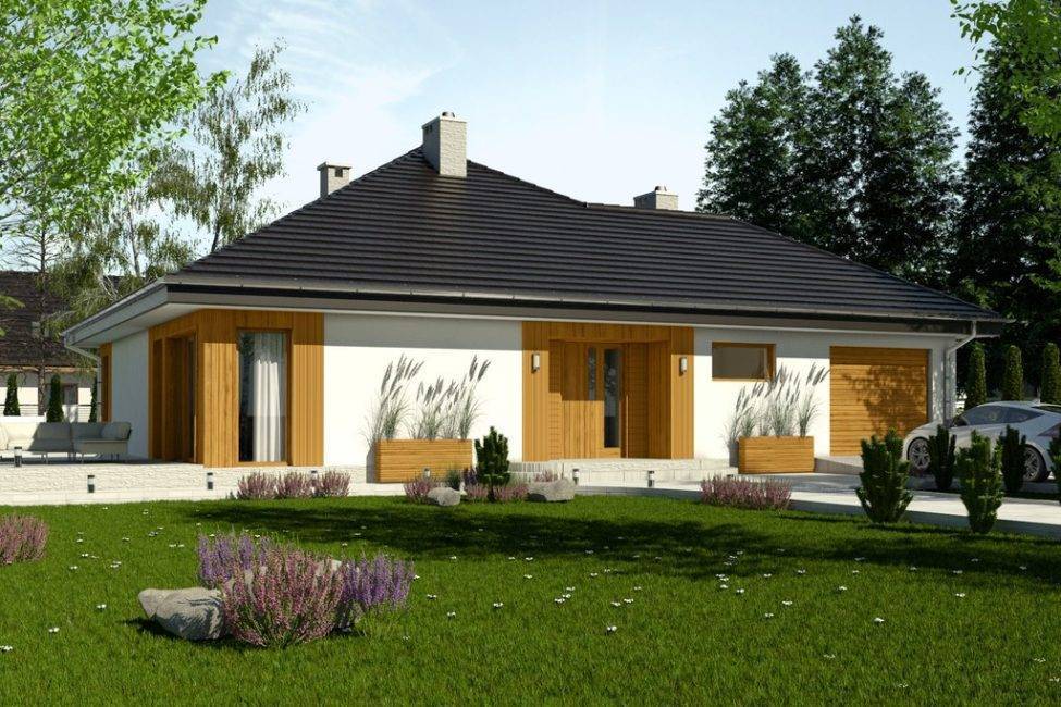 Одноэтажный дом из пенобетонных блоков с гаражом