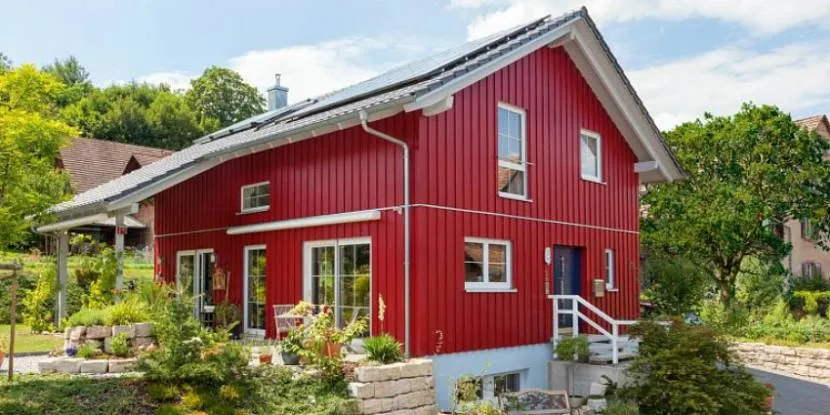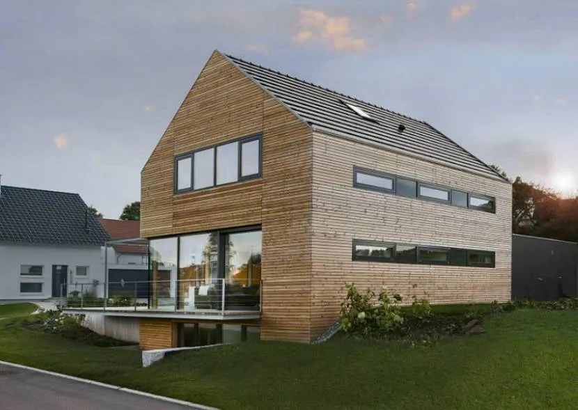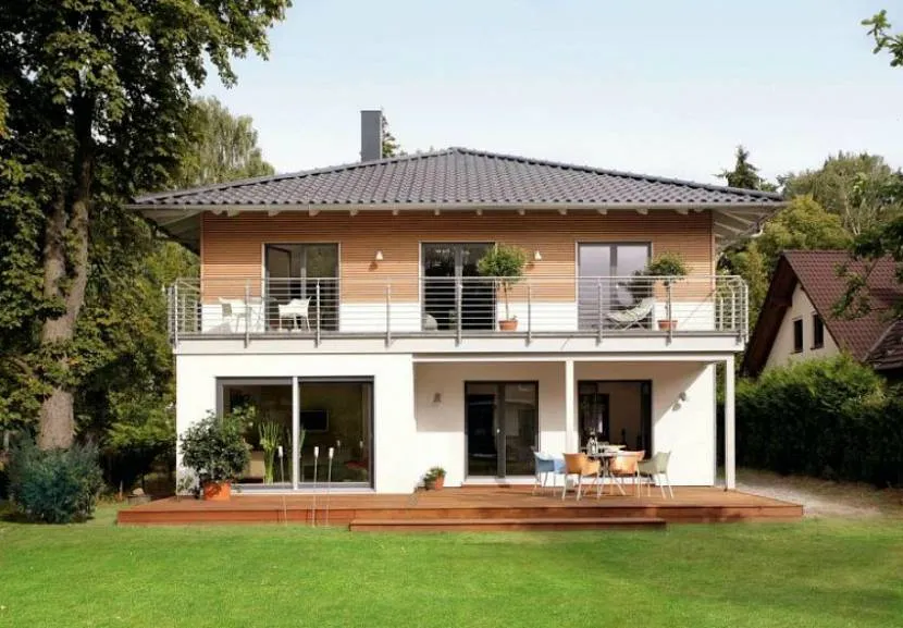 - Нависание второго уровня над первым закрепилось в немецкой архитектуре по той же причине, что и свесы кровли в швейцарских шале. Конструктивный элемент защищает стены от осадков, а также создаёт своеобразный навес над входом. Аутентичный приём использовать не обязательно, но очень желательно и в современных воплощениях.