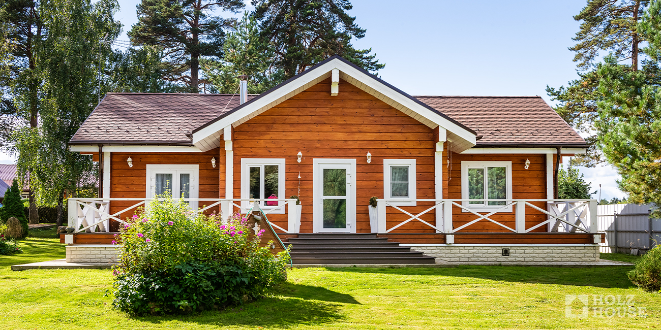 Для домов с высоким основанием будет уместна отделка на основе натурального дерева.