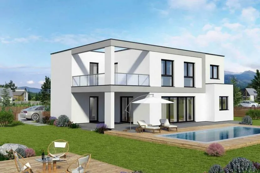 - Характерными элементами становятся панорамное остекление (естественный свет), плоские крыши (дополнительное пространство), кубическая или блочная форма (ничего лишнего).