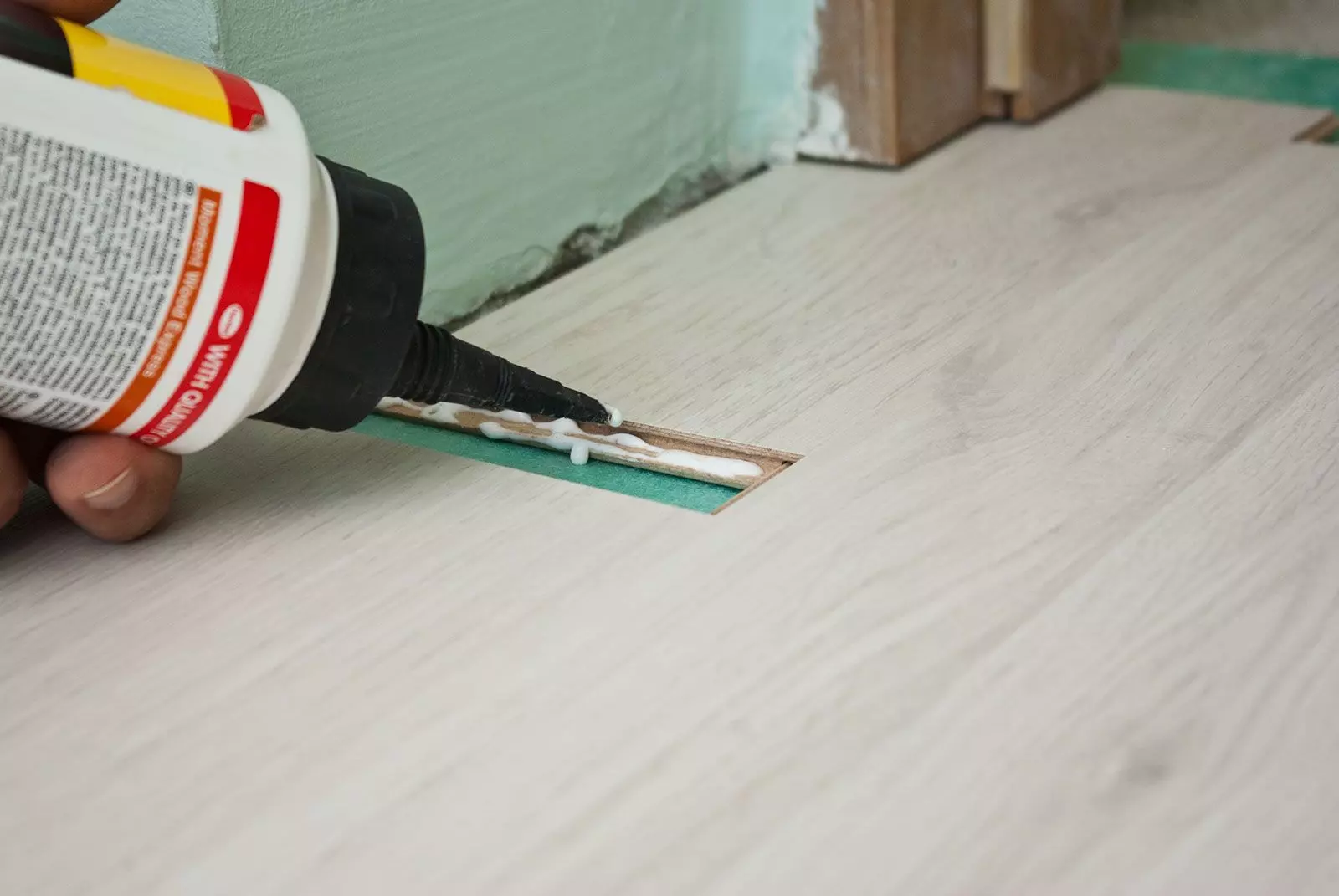 - Клеевой состав предохраняет ламинат от воздействия влаги. Клей герметизирует стыки и швы, не давая воде проникнуть внутрь ламината.