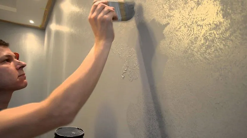 Стенка делится на небольшие квадраты, которые обрабатываются один за другим (без перерывов). Если приостановить процесс лакирования, то непременно появится «переход». Избавиться от последнего уже вряд ли получится. Наносить лак рекомендуется мазками, не пытаясь при этом прокрашивать штукатурку. Допускается выполнять круговые, прямые либо хаотичные перемещения.