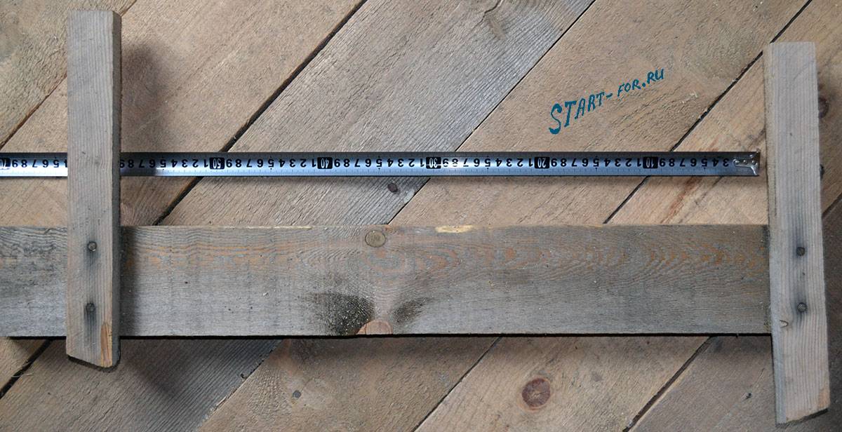 На брусок прибил две рейки, шириной 4 см, расстояние между реек 58 см, это стандартный шаг стоек в моем доме. А ширина реек обусловлена толщиной доски, в каркасе я применял доску 40х150 мм.