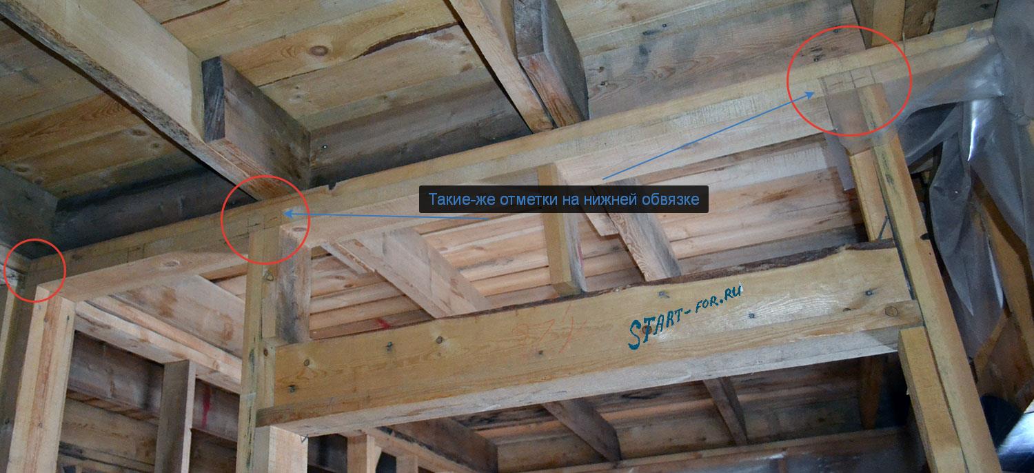 Важно учесть, что пазы верхней обвязки должны находиться строго под 90-градусным углом по отношению к нижней.