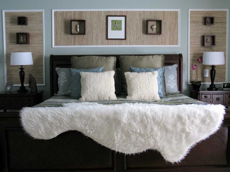 Помните! Натуральные материалы малоустойчивы к механическим повреждениям и теряют свое качество при попадании влаги, поэтому следите за сохранностью таких обоев в вашей спальне.