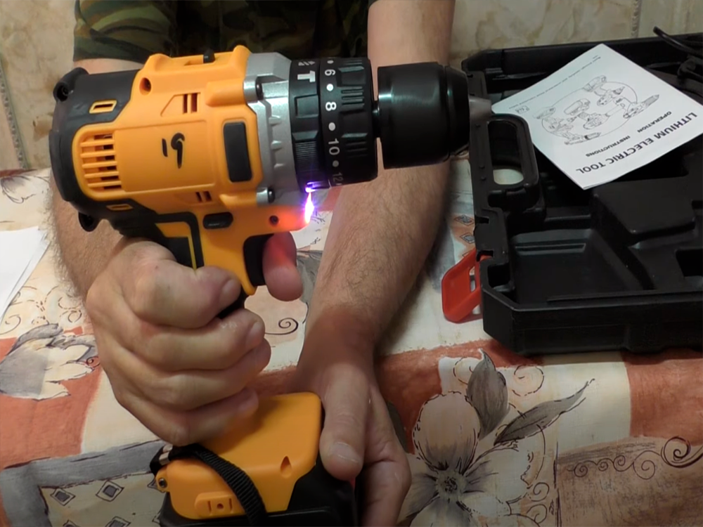 - Шуруповёрт двухрежимный: первый режим — 550 rpm, второй 2200.