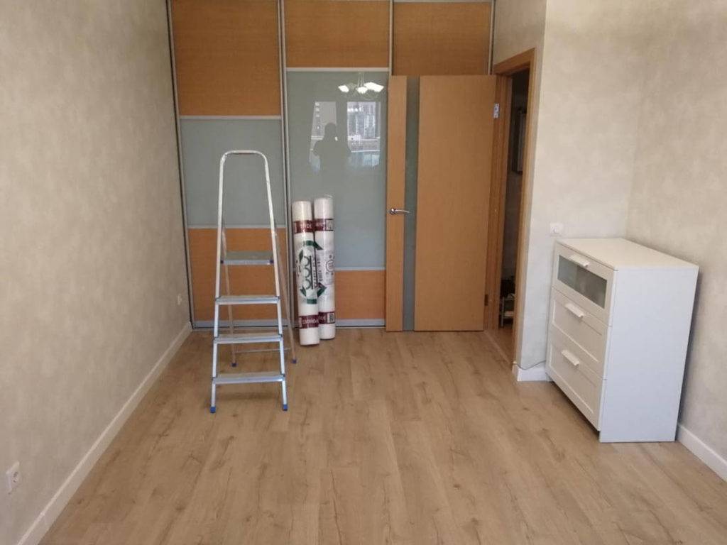 Фото 4. Напольное покрытие в спальне выглядит неотличимо от натурального деревянного.
