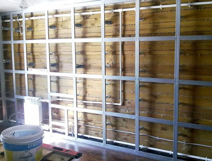 Основой выступают пластиковые, деревянные панели, установка предполагает закрепление каркасного типа.