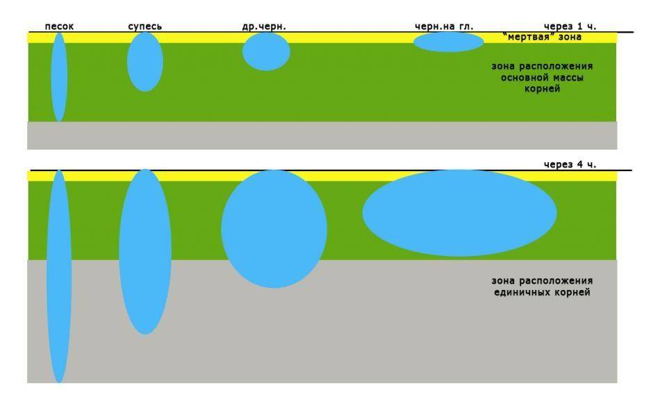 Перед вводом в эксплуатацию капельной системы для полива нужно произвести пусконаладочное тестирование и определить за какой период времени проходит такое количество воды и на сколько в глубину увлажняется почва.