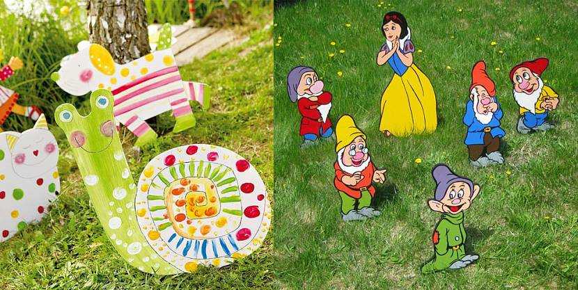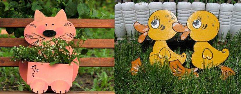 - Если фигурка, вырезанная из фанеры, будет установлена на грунте, в нижней части саморезами прикручиваются колышки. Чтобы поделка обрела истинную устойчивость и не завалилась под порывом ветра, длина колышков задается 40-50 см.