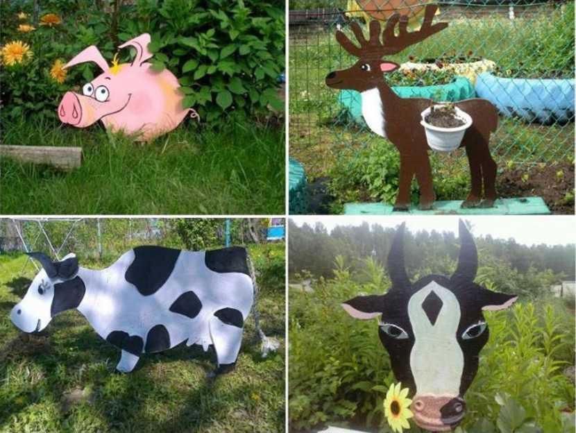- Фигурку закрепляют на грунте, вкопав колья, или закрепляют саморезами на заборе (стене).