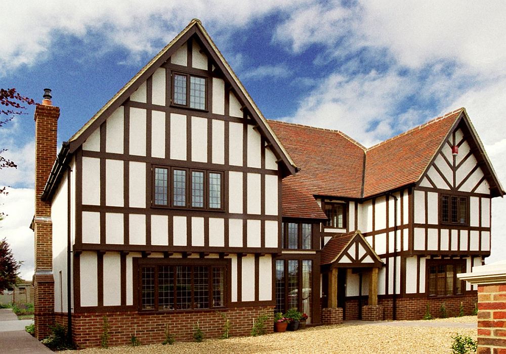 Немецкий «Фахверк» — костяк строения составляет сложносоставная конструкция, на которую требуется довольно много разнообразных стройматериалов в отличие от предыдущих вариантов. Кровля и каркас в фахверке являются одним целым.
