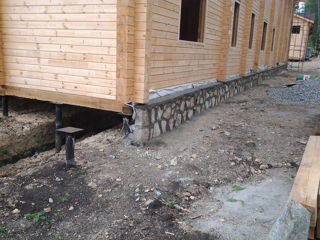 Столбчатый фундамент конкурирует с винтовым по стоимости, однако он часто вызывает в стене трещины из-за усадки, а ленточный гораздо дороже, и может быть установлен только в теплое время года.