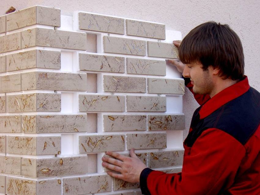Сухой метод монтажа предполагает использование фасадной плитки, специально предназначенной для такого способа.