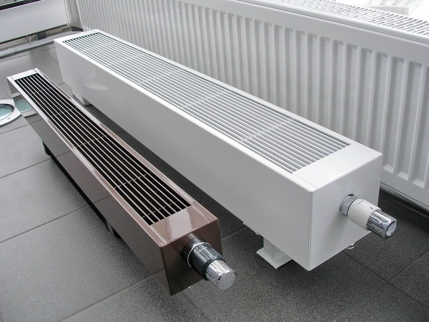 Есть много разновидностей водяных конвекторов – плинтусные устройства, внутрипольные агрегаты, приборы, навешиваемые на стены.