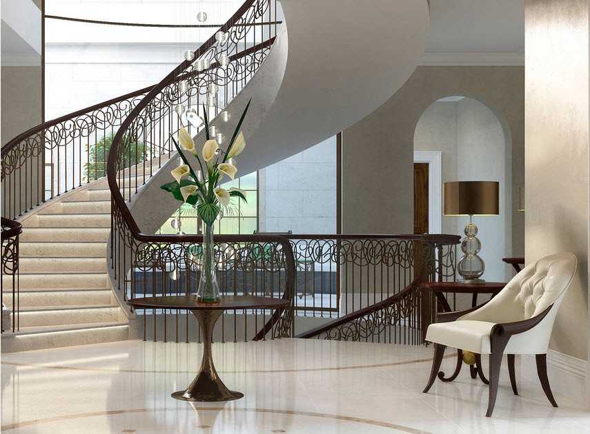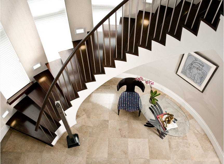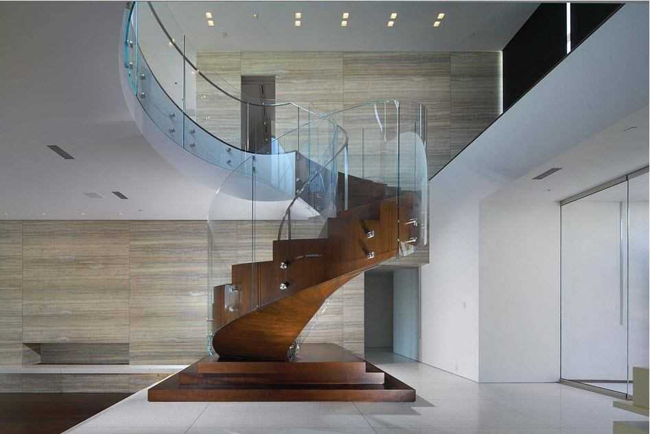 Лестничные конструкции со сложными вариантами пространственного расположения выглядят очень эффектно и оригинально. Выполнить такую работу могут только профессионалы самой высокой квалификации. Наиболее распространены полукруглые подъемы с забежными ступенями и верхней площадкой.