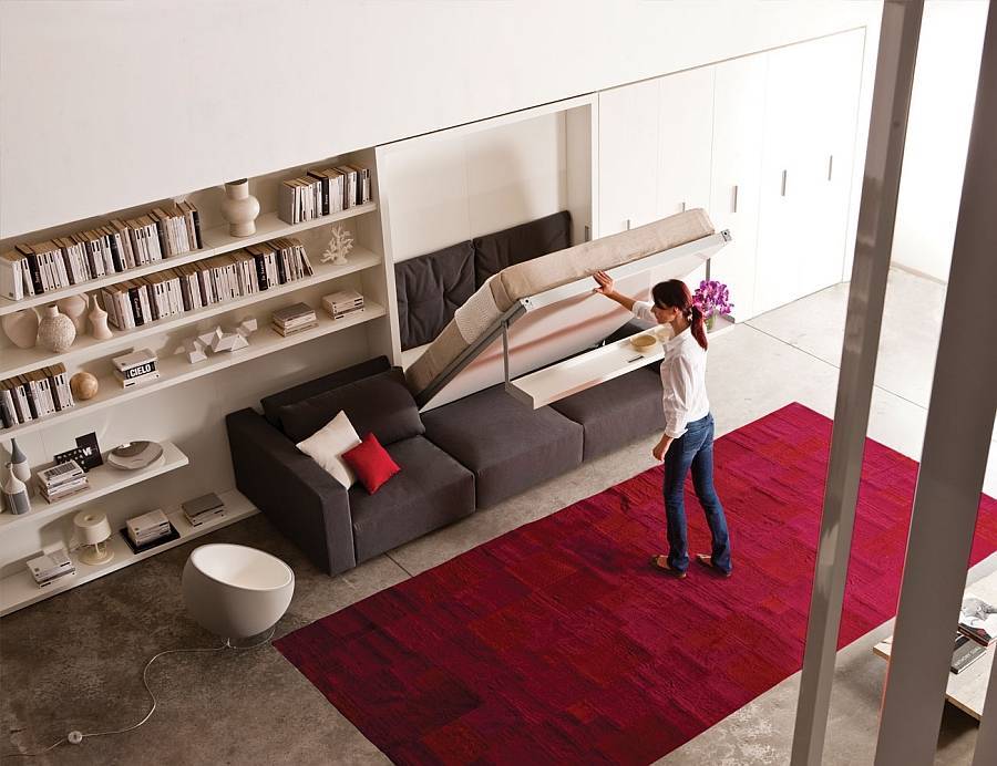 Трансформеры позволяют не только сэкономить полезное пространство квартир, но сделать зонирование комнат с помощью откидных кроватей из Италии, предлагаемых в широком ассортименте по соотношению ценового диапазона к качеству материалов.