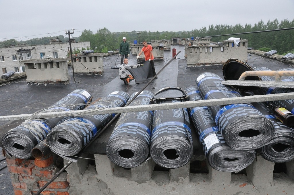 Этот тип покрытия чаще всего используется при ремонте плоской крыши. Многие советские постройки, имеющие плоские кровли перекрыты именно с использованием битумных материалов. Эксплуатационный срок битумных материалов сравнительно небольшой и составляет около пяти лет. В условиях сурового климата этот срок может быть еще и меньшим.