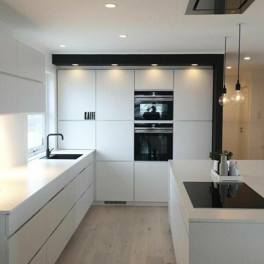 Скандинавский стиль — еще один идеальный вариант для оформления кухни в белом цвете. Как и в силе прованс, главное — передать атмосферу уюта. Но без обилия декоративных элементов.