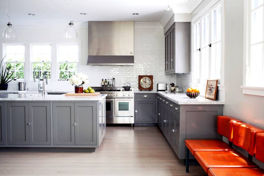 Но при этом профессионалы придерживают мнения, что серые стены на кухне должны оттеняться только светлыми и мягкими цветами. Яркие же оттенки лучше приберечь для расстановки акцентов.