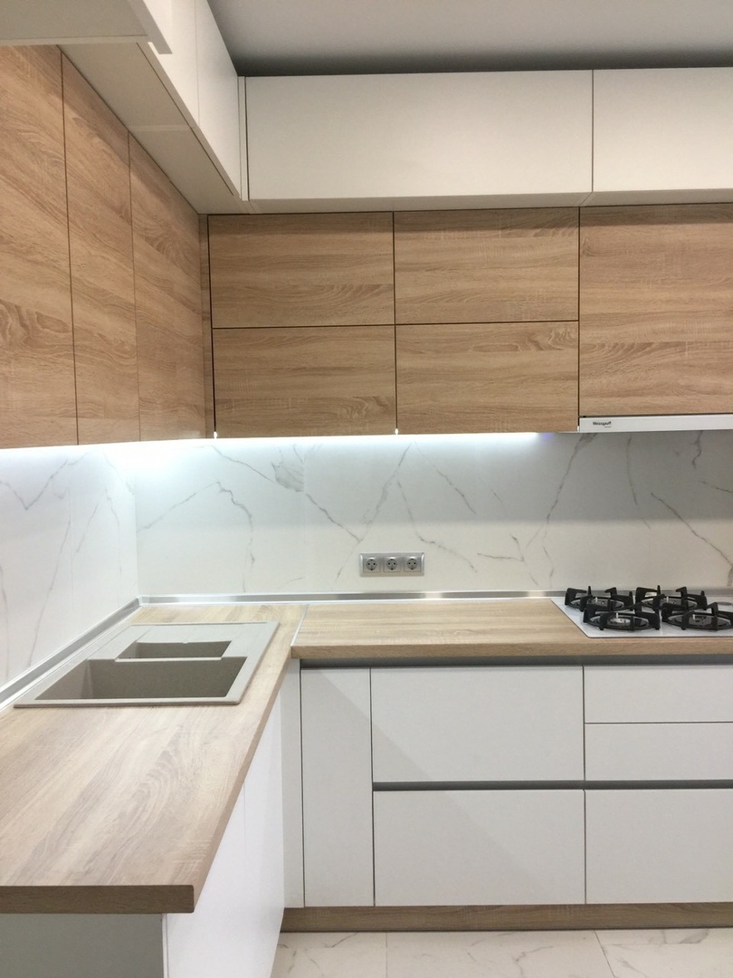 Четвертое – столешниц и фартук сделаны по-дорогому из