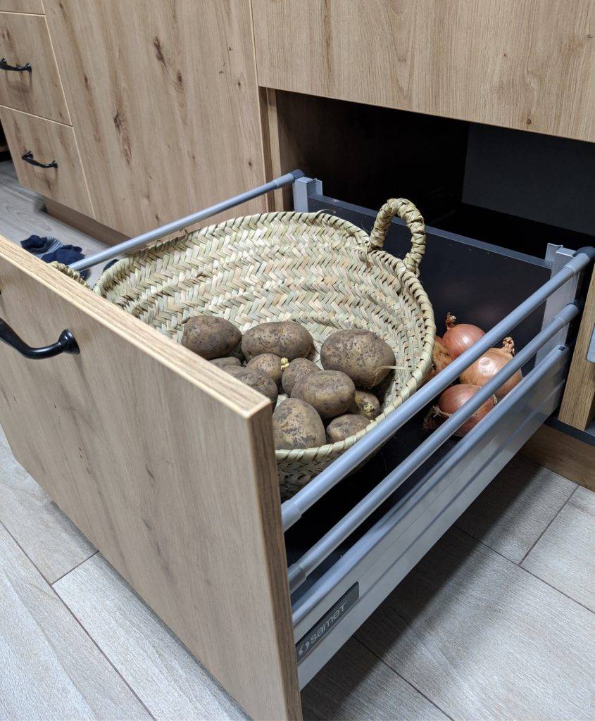 А внутри кухонных модулей делаются ящики, выдвижные модули для