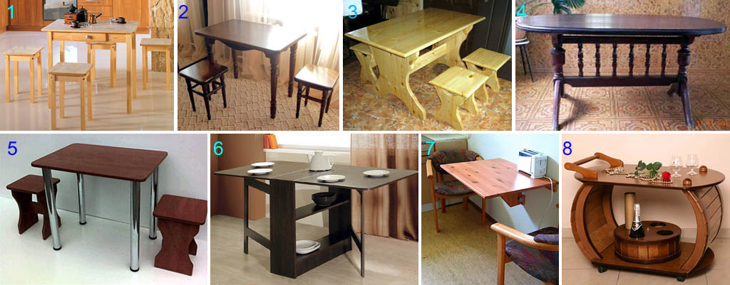 Возможно, это покажется странным, но такое простое сооружение, как обеденный стол, может иметь несколько вариантов исполнения. Отличаются они конструктивными особенностями, которые и обусловили 4 разновидности кухонного атрибута: