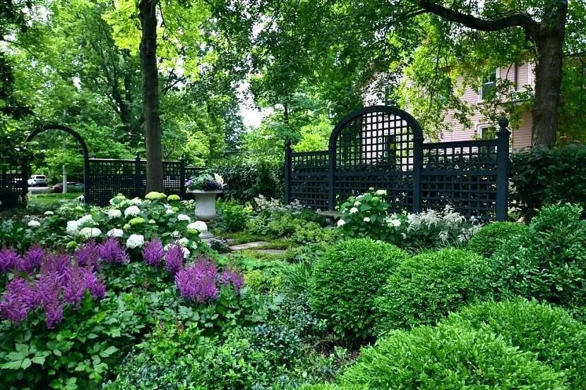 - Пейзажный (английский) стиль. Для пейзажного сада подбираются растения с листвой и цветами разных цветов. Частый прием в озеленении — сады непрерывного цветения.