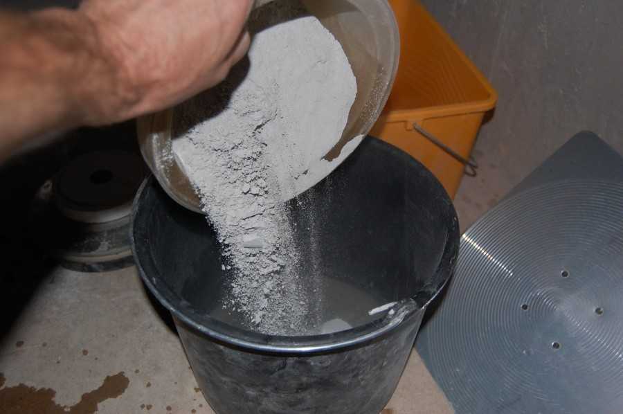 Есть специальные серии влагоустойчивых смесей. Чтобы замешать раствор из строительного материала марки «Knauf» ее потребуется 1 кг и 300 г воды на такое количество.