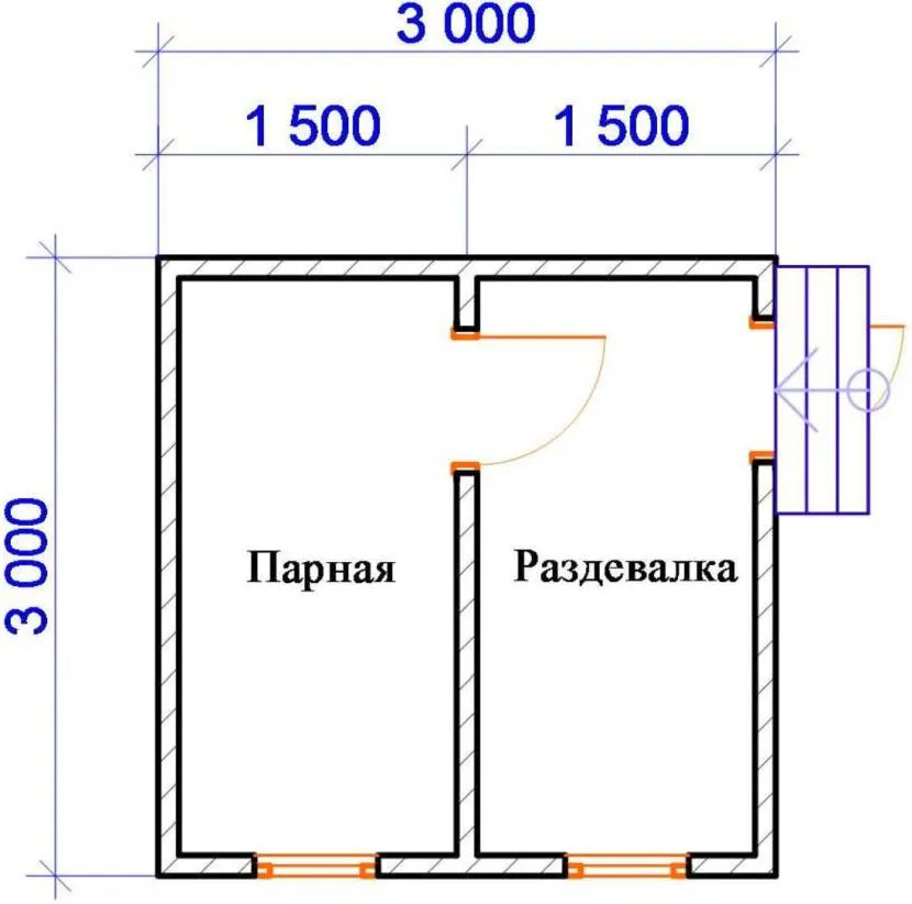Пример планировки бани 3х3 Источник pinimg.com