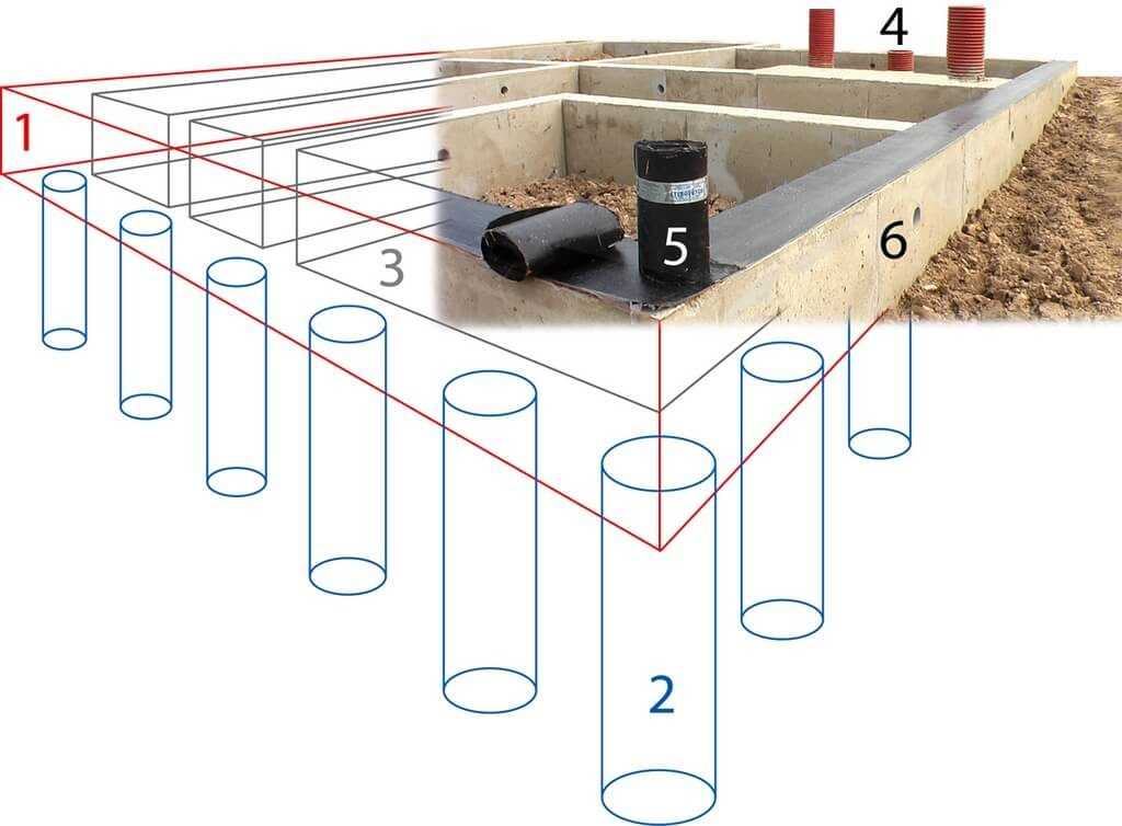 Существуют разные варианты конструкции свайно-ростверкового основания: