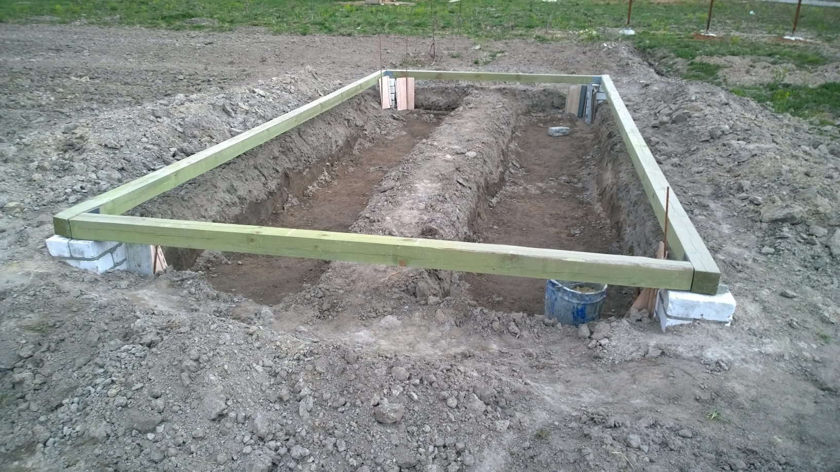 После этого выкапывается траншея, глубина которой выбирается в зависимости от веса конструкции, глубины промерзания почвы и залегания грунтовых вод.