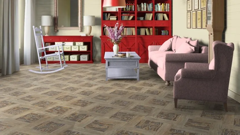 - Декоративный слой — отпечатанный рисунок. Многие выбирают это покрытие как раз за возможность подобрать на свой вкус расцветки и текстуры рисунка, который подошел бы под задуманный интерьер.
