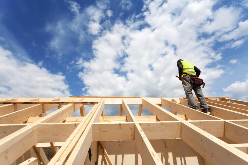 - Сборка и монтаж стропильной системы. Она выступает как «скелет» для кровельного покрытия. Её рассчитывают, учитывая снеговые и ветровые нагрузки, приходящиеся на крышу, а также собственный вес кровли и временные нагрузки.