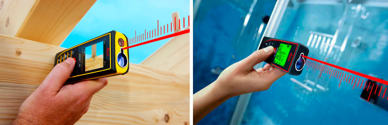 При помощи лазерной рулетки можно рассчитать длину, ширину, высоту, площадь объекта и расстояние до него. При этом можно замерять размеры как в закрытом помещении, так и на открытых площадках. Некие приборы разрешают высчитать расстояние до объекта, находясь за несколько сот метров от него