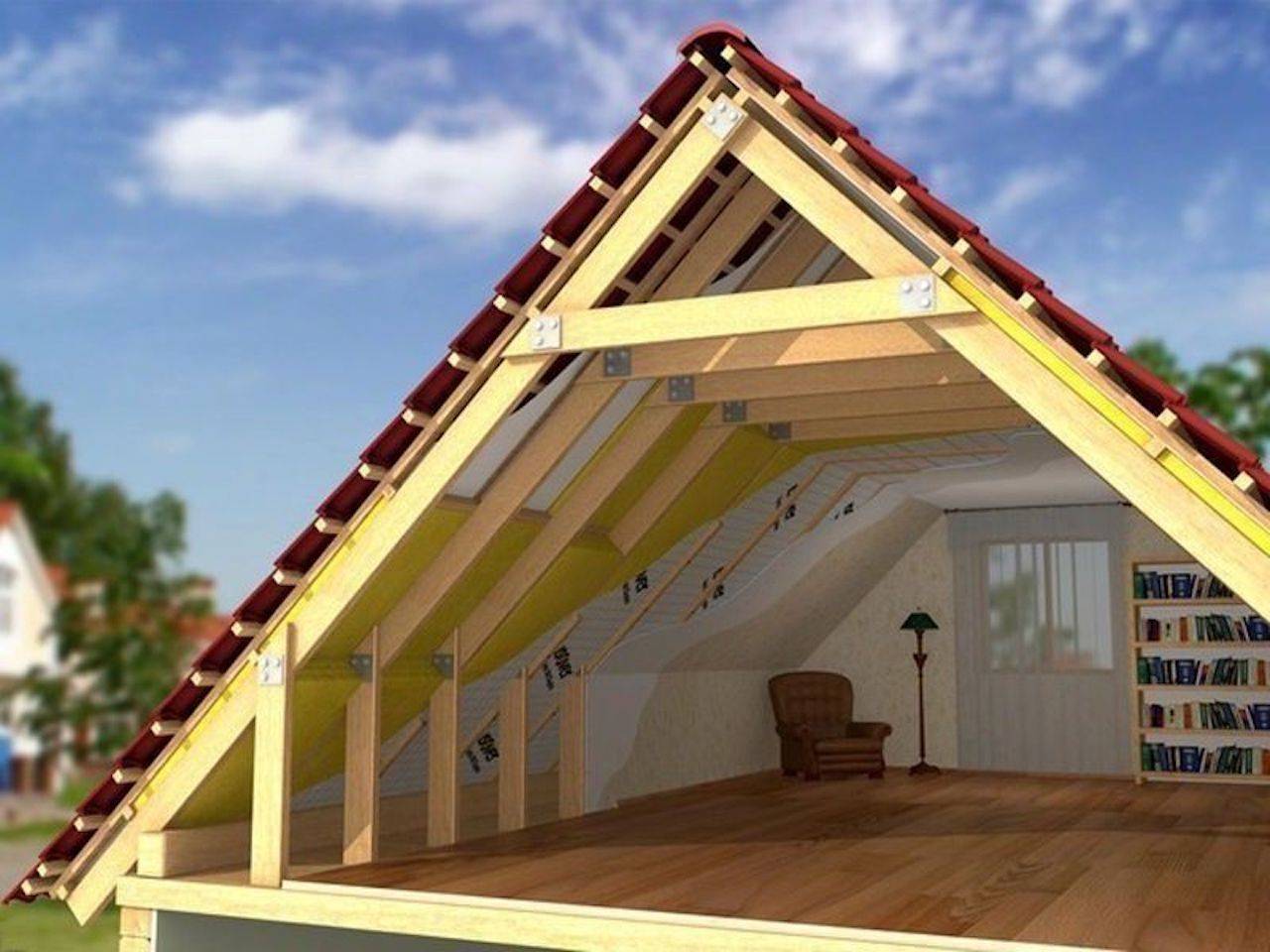 Очевидно, что наиболее прочной конструкцией является двускатная крыша. Но для получения достаточно просторного помещения при таком устройстве стропил нужно уменьшать угол между скатами, а это ведёт, к повышению ветровых нагрузок на кровлю. Разумный выход находится в создании полумансарды, когда от пола до потолка устанавливаются стойки на высоту 1,3–1,8 метра, а уже к ним крепятся стропила.Такое устройство требует установки низких ригелей, чтобы компенсировать распирающие нагрузки от стропильных ног на стойки.