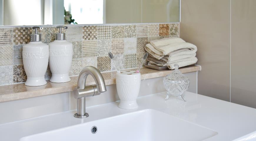 зоны, нередко применяются и в облицовке комнаты гигиены в комбинации с