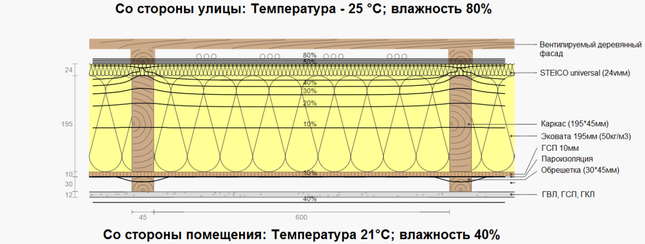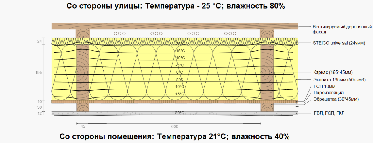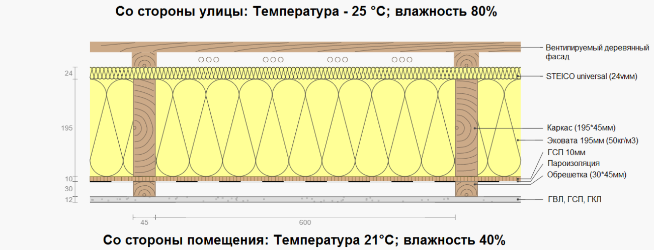 И естественно при такой конструкции в стене не будет влагонакопления.