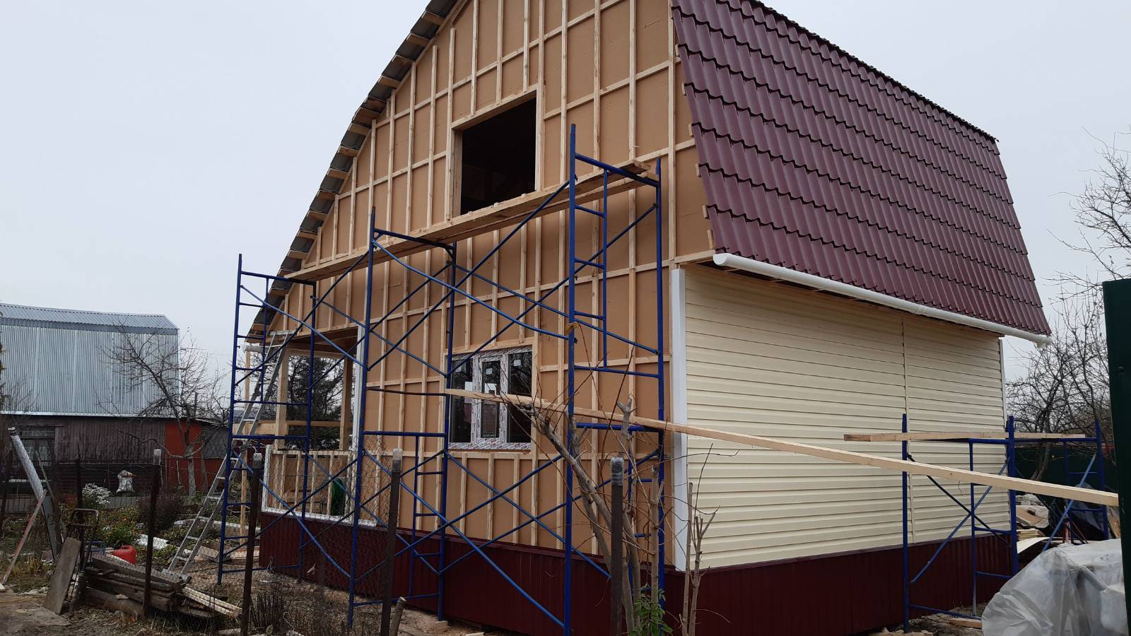 - внешняя обшивка МДВП плитой 24-25мм (плотность 200-240кг/м3)