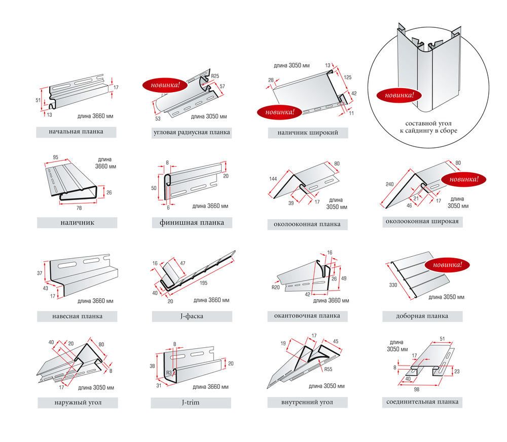Также перед началом работы следует посчитать количество внутренних и внешних углов, определить их длину, чтобы купить соответствующие соединительные элементы в нужном количестве. Также, для оформления зон дверей и окон понадобятся наличники, оконные профили, ветровые планки. Поскольку стоимость дополнительных элементов достаточно ощутима, следует точно посчитать количество, чтобы оформление дома или цоколя сайдингом не вызывала ненужных трат. Как рассчитать количество металлического профиля или планок для обрешетки — будет изложено в следующих разделах. Чтобы установить цокольный сайдинг своими руками, также понадобятся: