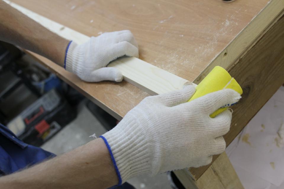 Зашкуриваем бруски электрической шлифовальной машинкой, обрабатывает торцы наждачной бумагой. Я использовал сосну. У нее много сучков, поэтому нужно выбирать подходящие рейки. Сосна «слоится» при ручной обработке, поэтому нужно использовать электроинструмент. Основное достоинство данного вида древесины для работы — низкая стоимость материала.