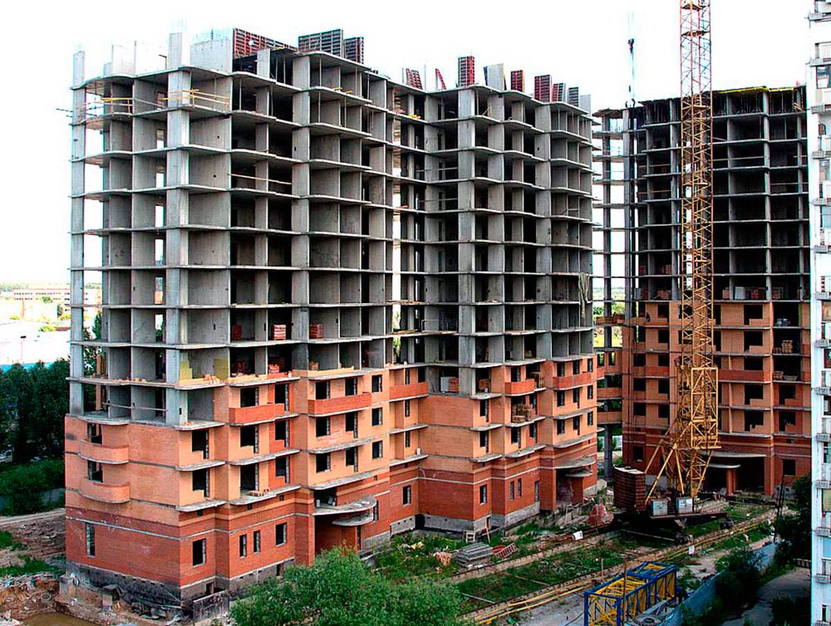 Каркас в зданиях первого типа состоит из бетонных колонн и стен, установленных на фундамент и создающих «скелет» всей постройки. Внутренние перегородки и перекрытия могут выстраиваться из стандартных панелей, пенобетона. Монолитно-каркасные дома преимущественно возводятся по оригинальным проектам для жилых комплексов высокого уровня комфортности.