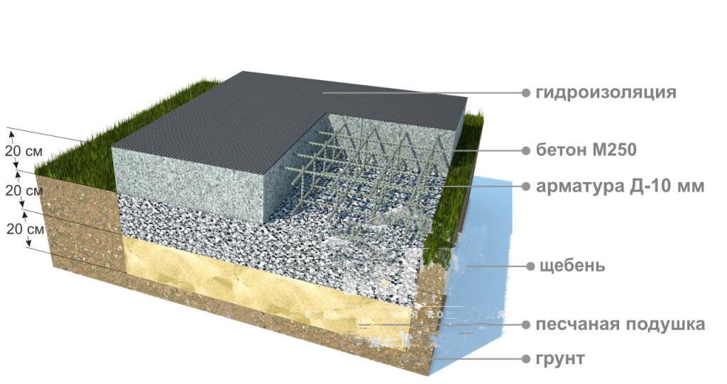 - Песка, щебня и гравия, которые формируют подушку под монолитное основание.