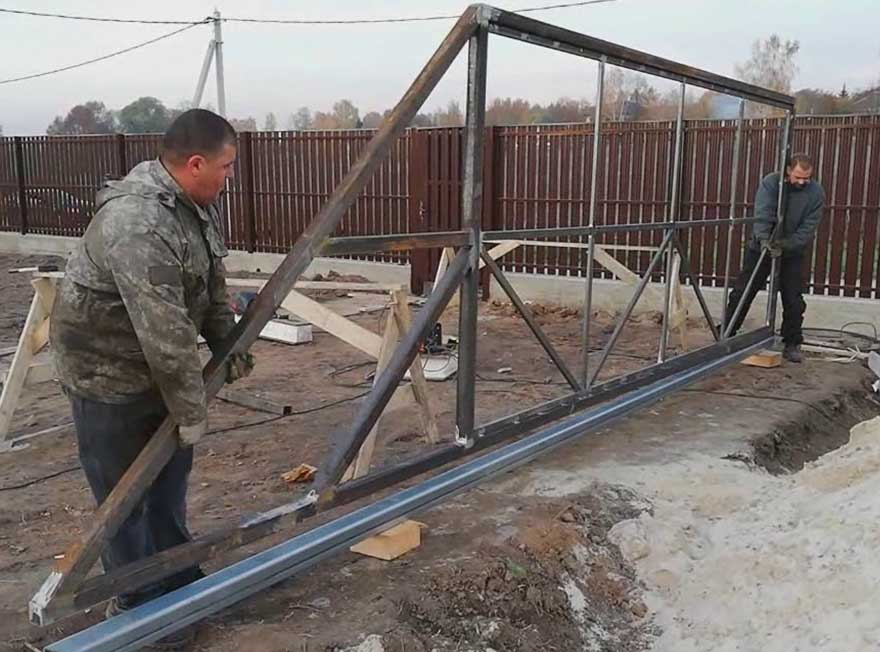 Следует правильно установить швеллер, к которому будут крепиться откатные ворота